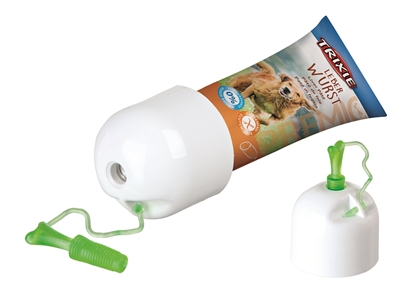 Tube Guard Geef jij jouw hond een beloning uit een tube, dan ken je het probleem van de kapotte tube. Wanneer jouw hond enthousiast uit de tube eet, kan het gebeuren dat hij zijn tanden per ongeluk in de tube of in jouw hand zet. Wanneer je deze bescherm