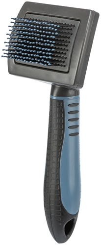 Trixie Zachte Borstel Buigbaar Kopstuk 5x20 cm Fijne zachte slickerborstel met een flexibele kop voor het borstelen van de vacht. Door het borstelen komen de meeste doden haren uit de vacht. Afmeting: 5x20 cm